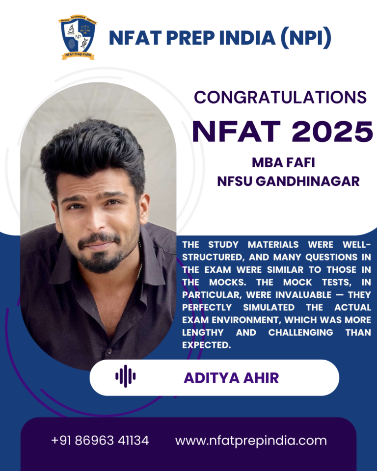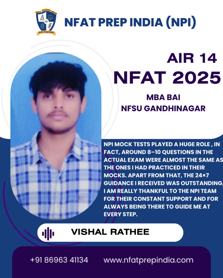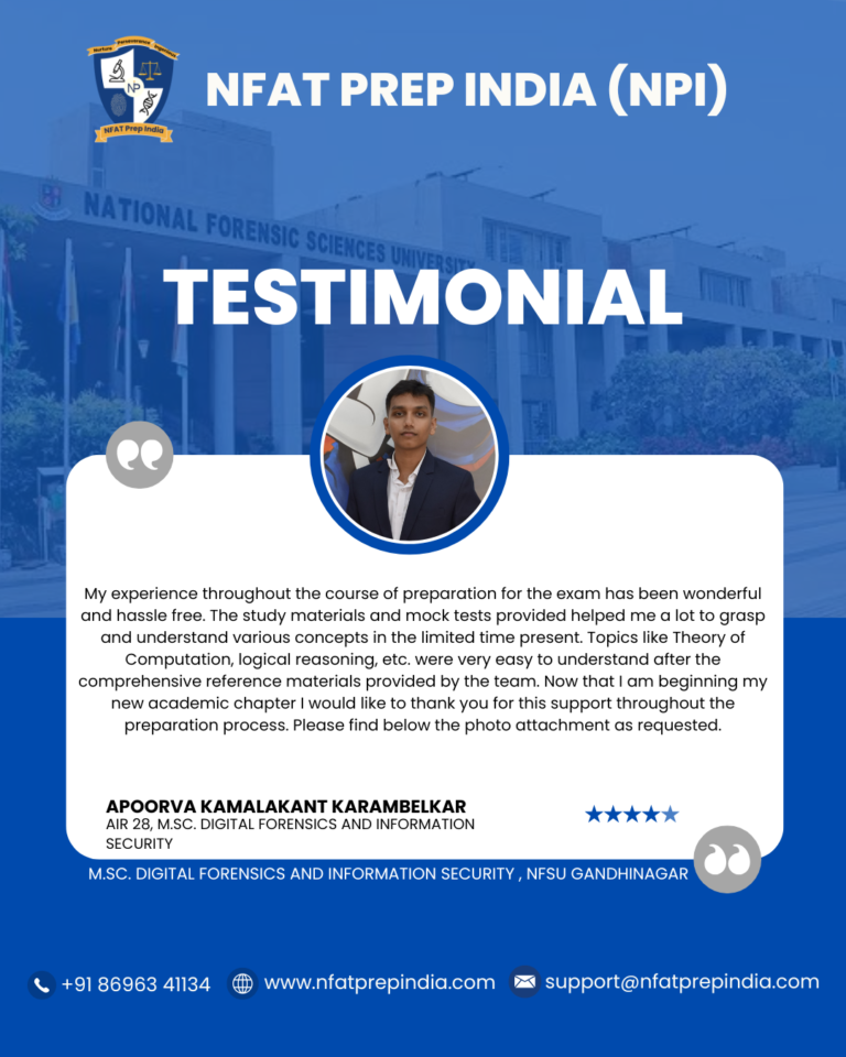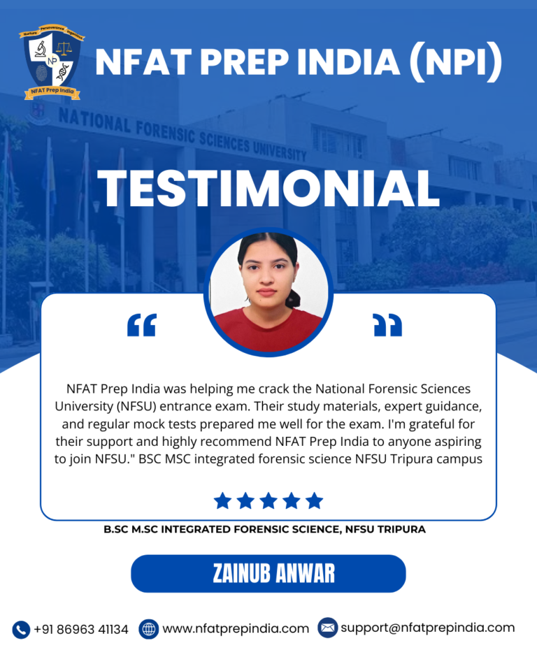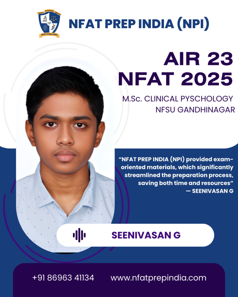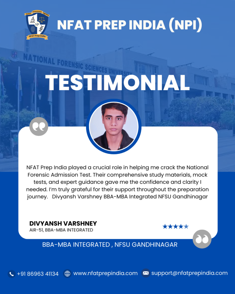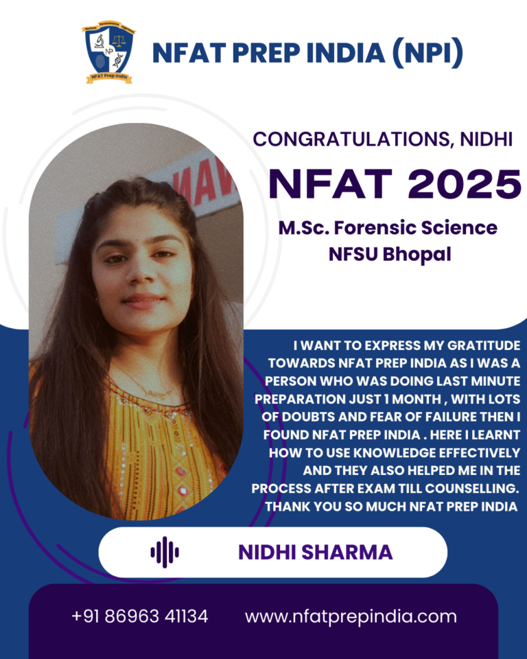 Hear from our students who have cracked the NFAT exam with the help of NFAT Prep India (NPI). Their experiences, challenges, and achievements will inspire you to stay focused and achieve your dream college (NFSU). Read their testimonials and see how our Mentorship Program, Mock Tests, and Expert Guidance have made a difference in their journey!Â
